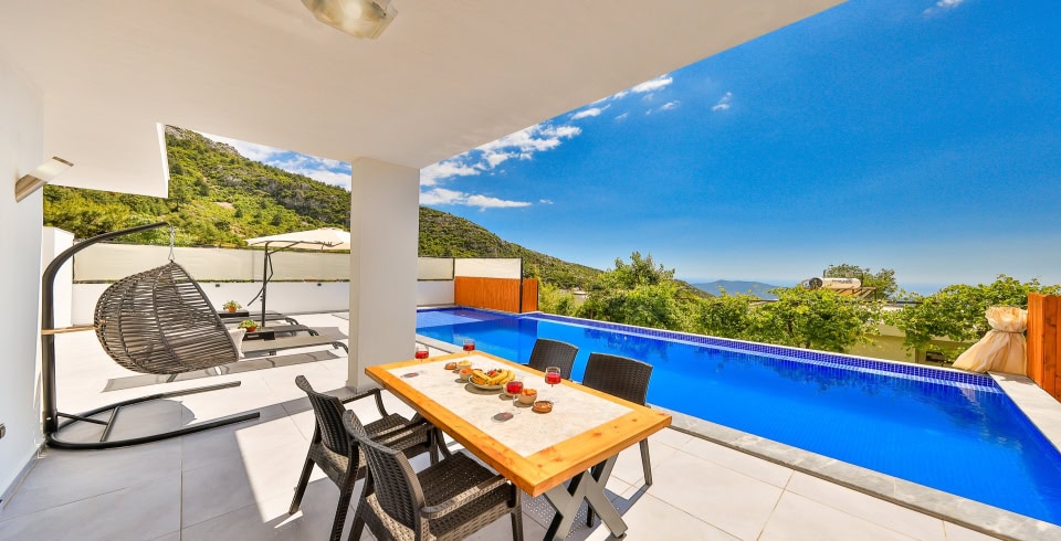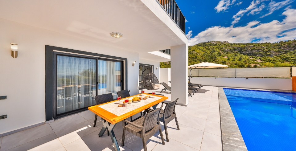 Villa Norton, Kalkan'ın İslamlar Bölgesinde, doğa ile iç içe, huzurlu bir konumda yer alan, 2 yatak odalı ve 4 kişi kapasiteli bir kiralık villa olarak dikkat çekiyor. Villanın iç mekanları modern ve konforlu bir şekilde tasarlanmış, misafirlerin rahatı düşünülerek her detay özenle hazırlanmıştır. Her yatak odasında, biri çift kişilik diğeri iki adet tek kişilik yatak olmak üzere, konaklayacak misafirlerin ihtiyaçları düşünülmüş. Ayrıca, bir yatak odasında jakuzi bulunması, konaklamanın lüks ve rahatlatıcı bir deneyim olmasını sağlıyor. Her odanın kendine ait banyosu olması, özellikle gruplar ve aileler için ekstra konfor ve mahremiyet sunuyor. Villanın dış mekanı, korunaklı bir havuz terası, özel yüzme havuzu, barbekü alanı, salıncak ve mini bahçesi ile donatılmış, böylece dışarıda zaman geçirmek isteyen misafirler için ideal bir yaşam alanı sunulmuş. Havuz alanının ön kısmında bulunan perdeleme sistemi ise, istenildiğinde ekstra mahremiyet sağlayarak rahat bir ortam yaratıyor. Doğa ve kısmi deniz manzarası, Villa Norton'u özellikle doğayı ve sakinliği tercih eden aileler, arkadaş grupları ve balayı çiftleri için cazip bir tatil seçeneği haline getiriyor. Bu özel ve huzurlu villa, unutulmaz bir tatil deneyimi yaşamak isteyenler için mükemmel bir seçenektir.