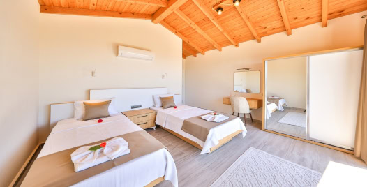 2. Yatak Odası : 2 adet tek kişilik yatak, komodin, klima, makyaj masası, elbise dolabı, banyo ve lavabo bulunmaktadır.