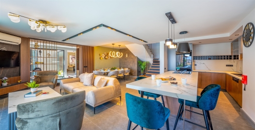 Havuz ve Bahçe : Bahçe içerisinde korunaklı özel yüzme havuzu, 6 adet şezlong ve şemsiye, yemek masası ve sandalyeler, bahçe oturma grubu ve barbekü yer almaktadır.
