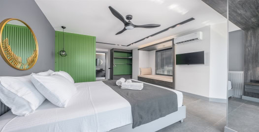 4. Yatak odası: Çatı katta bulunmakta olup çift kişilik yatak tv wc-banyo komodin dolap.