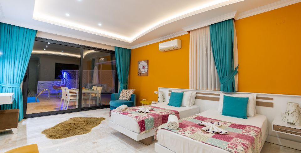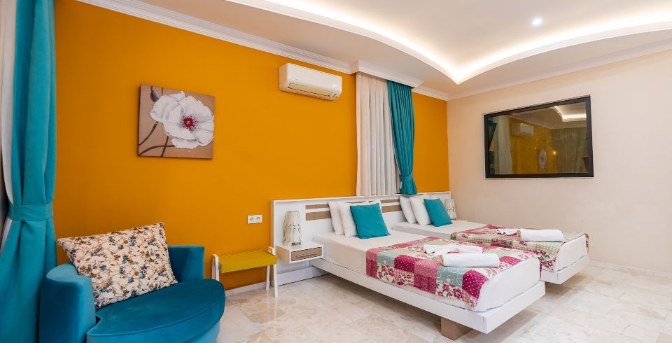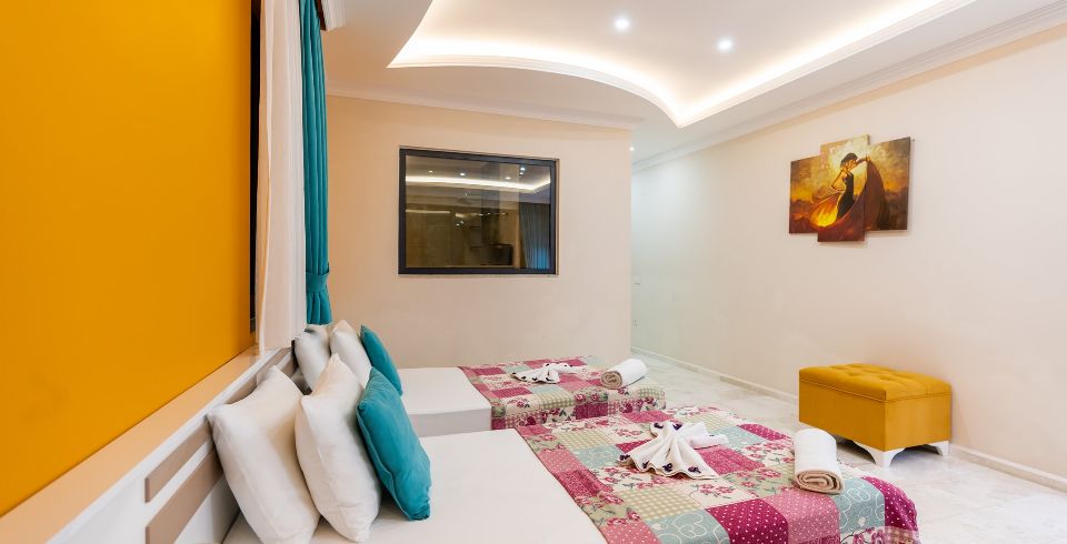 2. Yatak Odası : 2 adet tek kişilik yatak, televizyon, klima, elbise dolabı, makyaj masası, komodin, banyo ve lavabo bulunmaktadır.
