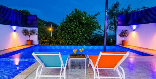 Kiralık yazlık villa Kalkan İslamlar bölgesinde konumlanmıştır. 1 yatak odalı 2 kişilik balayı villasıdır. Çift kişilik yatak odasında jakuzi bulunmaktadır .Özel yüzme havuzu ve havuz terası muhafazakar hale getirilmiştir. Doğa içerisinde sakin sessiz kuş seslerinin hakim olan villamız kalkan merkeze araçla 10 dakika uzaklıktadır. Villamızın havuz terası oldukça geniş olup sizlere ayrıcalık sunmaktadır.