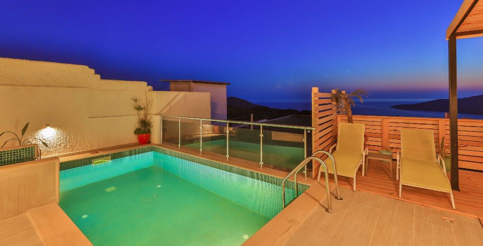 Villa Okyanus 1, Kalkan Kördere bölgesinde bulunuyor olup 2 kişilik kapasitesi ile 1 yatak odasına sahiptir. 1+1 Olması nedeni ile balayı çiftlerine daha çok hitap etmekte olan villamız son derece lüks bir balayı villası olarak tasarlanmıştır. Muhafazakâr villamız özel tatil isteyen ailelere özel hale getirilebilir ve bu nedenle havuz iç taraftadır. Havuzun iç tarafta olması görülme riskini en aza indirerek muhafazakâr olabilir. Harika bir deniz manzarasına ev sahipliği yapan villamızda manzaraya karşı güneşin ve havuzun tadını çıkartabilirsiniz. Villa içerisinde ihtiyacınız olan eşyalar mevcut olup son derece konforlu ve lüks eşyalarla döşenmiştir. Ayrıca villa içerisinde yatak odasında geniş bir jakuzi bulunmaktadır. Eşiniz ile beraber bu lüks villamızda harika anılar biriktirmekle beraber unutamayacağınız bir tatil fırsatı sizi bekliyor. Villa Okyanus 1 siz değerli tatil severleri misafir etmek için bekliyor.