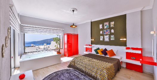 Yatak Odası : 1 adet çift kişilik yatak, klima, jakuzi, komodin, elbise dolabı, makyaj masası, banyo ve lavabo bulunmaktadır.