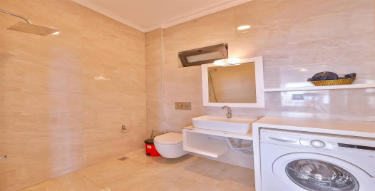 Mutfak : Modern Amerikan mutfak, buzdolabı, bulaşık makinesi, çamaşır makinesi, ankastre fırın, mikrodalga fırın, ankastre 4’lü ocak, elektrikli su ısıtıcısı, dört kişilik yemek takımı, tava, tencereler, çatal, bıçak vs.