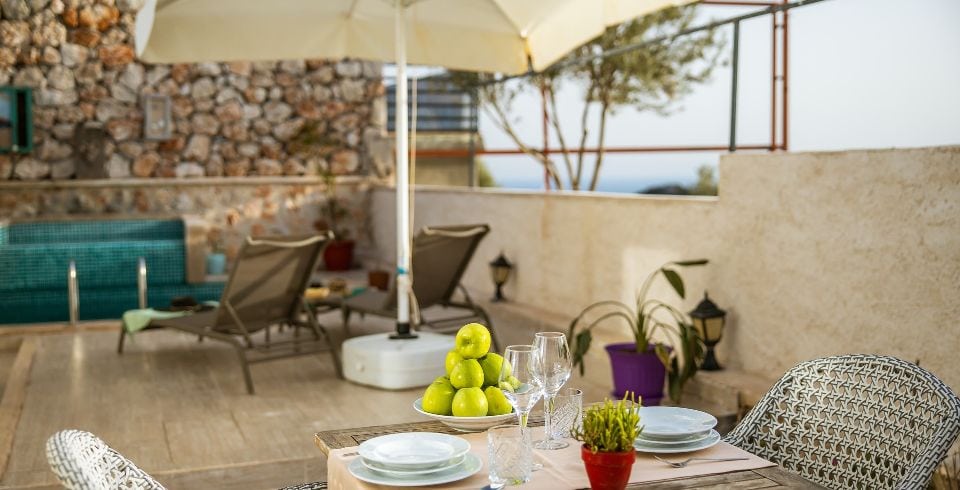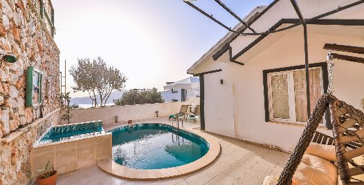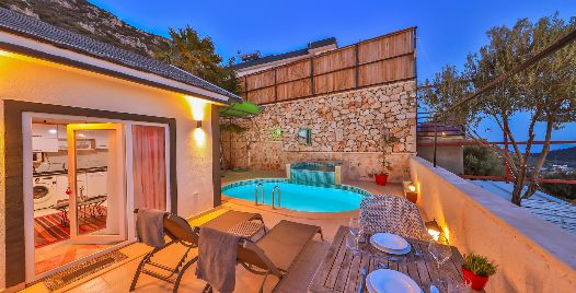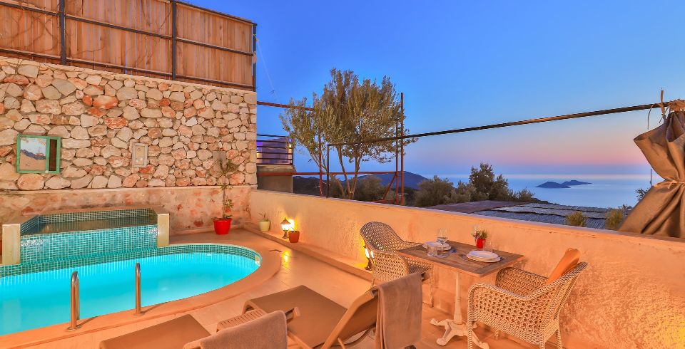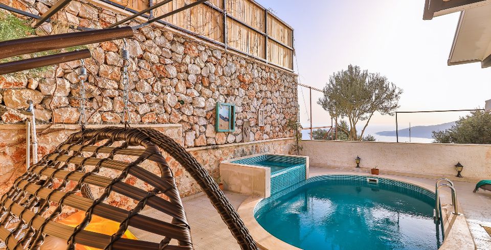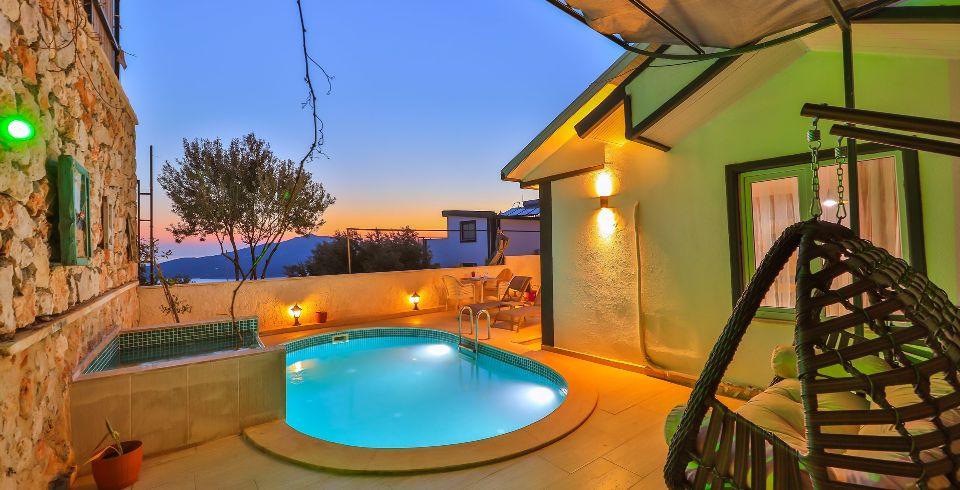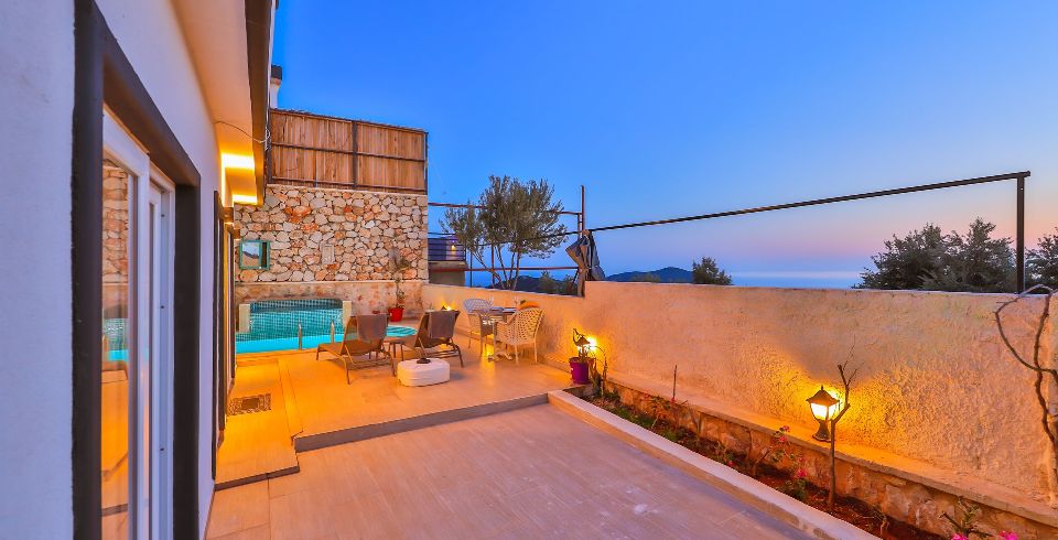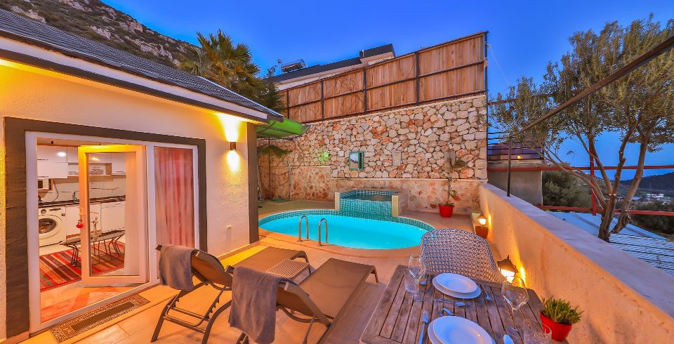 Kalkan’ın Kördere mevkisin de yer almakta olan muhafazakar, kiralık, yazlık müstakil villamız ile huzurlu ve sakin bir tatil deneyimi gerçekleştirebilirsiniz. Şüphesiz Kalkan’ın en güzel manzarasına karşı olan son derece itina ile tasarlanmış, lüks, muhafazakar villamız 1 yatak odalı, muhafazakar çiftlerimizin tercih edeceği jakuzili balayı villasıdır. Doğa içerisinde sessiz – sakin ve kuş seslerinin hakim olduğu villamızda teras muhafazakar hale getirilmiştir. 1 yatak odalı olmasına rağmen geniş bir bahçeye sahip olan villa terasımızın havuz terası oldukça geniş olup, sizlere ayrıcalık sunmaktadır. Bahçemizin sağ tarafında ise üstü kapalı yemek masası, barbekü ve çeşitli puflar bulunmaktadır. Villa Okyanus 4 Kalkan Merkez’e yalnızca 10 dakika mesafe uzaklığındadır. Her balayı çiftinin hayali olan bu tatil için özenle dizayn edilmiş Villa Okyanus 4 lüks ama aynı zamanda ekonomi açısından her bütçeden ailelerimize uygundur. Seçeneklerimizden gözde olan villalarımızdandır ve sık tercih edilmektedir. Villamızı tercih eden çiftlerimizin son derece memnun kaldığını belirtmek ister, şimdiden keyifli tatiller dileriz.