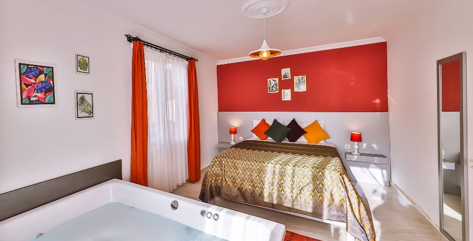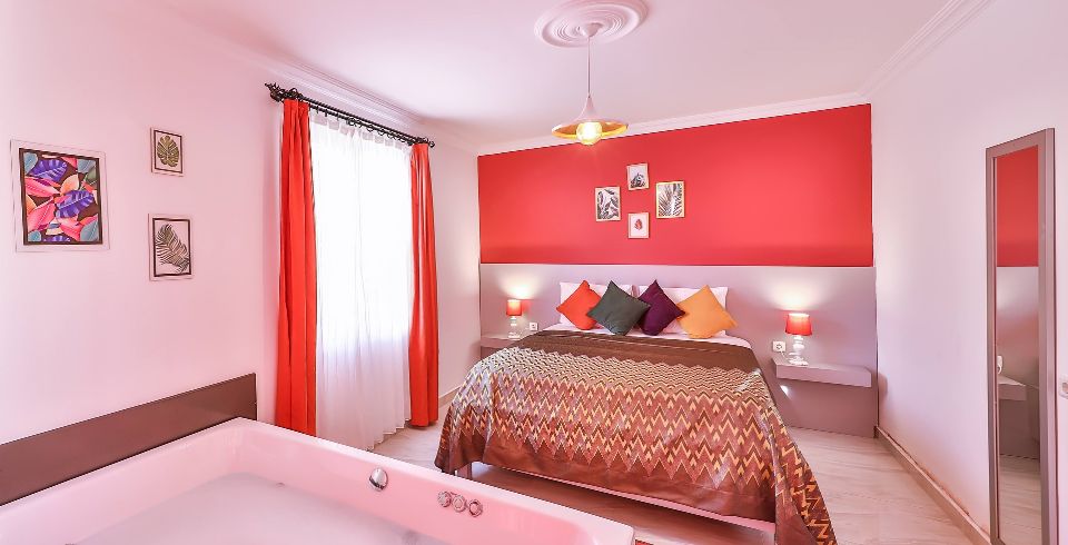 Yatak Odası : 1 adet çift kişilik yatak, klima, jakuzi, komodin, elbise dolabı, makyaj masası, banyo ve lavabo bulunmaktadır.
