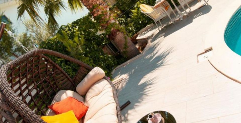 Bahçe : Villamızın bahçesinde özel yüzme havuzu, güneşlenmeniz için 2 adet şezlong, güneşlenme terası, 2 kişilik masa, oturma grubu, mangal keyfiniz için barbekü, güneş şemsiyesi bulunmaktadır.