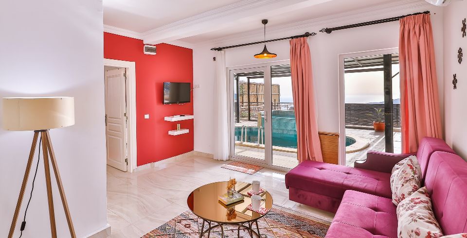 Salon : Villa Okyanus 5’in salonunda sizi şık bir oturma grubu ile klima, televizyon, internet, uydu, koltuk, sehpa ile ferah bir salon bekliyor olacaktır. Havuz terasına çıkış yapılmaktadır.
