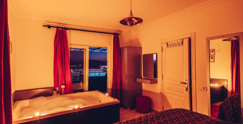 Yatak Odası : 1 adet çift kişilik yatak, klima, jakuzi, komodin, elbise dolabı, makyaj masası, banyo ve lavabo bulunmaktadır.
