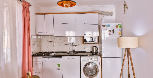 Mutfak : Villamızın geniş Amerikan mutfağı ile sizlere kendi evinizin mutfağı gibi hissettirecek. Ayrıca mutfakta klima, bulaşık makinası, buzdolabı, çamaşır makinası, mikrodalga fırın, tost makinası, su ısıtıcısı, fırın, 4'lü ocak seti ile tava tencere vb. mutfak araç gereçlerini kullanma fırsatını sizlere sunuyoruz.
