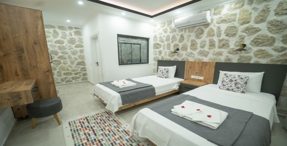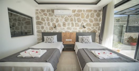2. Yatak Odası : 2 adet tek kişilik yatak, klima, elbise dolabı, komodin, makyaj masası, banyo ve tuvalet bulunmaktadır.