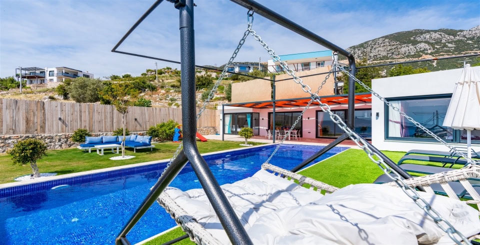 Havuz ve Bahçe : Özel bahçe içerisinde, şezlong, güneş şemsiyesi, damla salıncak, bahçe oturma grubu, çocuk oyun alanı, barbekü bulunmaktadır.