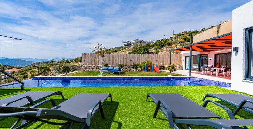 Villamızda bahçe ve çocuklarımız içi tatil boyunca keyifli vakit geçirebilmeleri için park bulunmaktadır. Villamızın havuz ve havuz terası korunaklı dışarıdan gözükmemektedir. Muhafazakar aileler de villamızı gönül rahatlığı ile tercih edebilmektedirler.