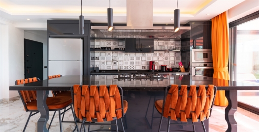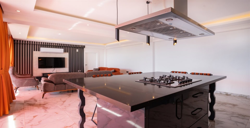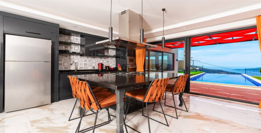 Mutfak : Modern Amerikan mutfak içerisinde buzdolabı, bulaşık makinesi, çamaşır makinesi, fırın, 4’lü ocak seti, su ısıtıcısı, çaycı, tost makinesi, mutfak araç gereçleri ve yemek masası bulunmaktadır.