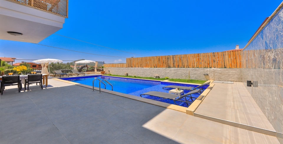 Havuz ve Bahçe : Villamızın havuz terasında şezlong, şemsiye, oturma grubu, yemek masası, barbekü, salıncak, masa tenisi, özel yüzme havuzu, bulunmaktadır.