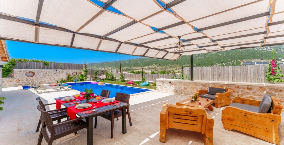 Kalkan Sarıbelen mevkiinde yer alan, özel havuzu tam korunaklı villamızdır. Villamız yemyeşil bahçeye sahiptir. Konforlu ve şık bir iç mekana sahip villamızda harika bir tatil geçirebilirsiniz ve tüm yılın yorgunluğunu üzerinizden atabilirsiniz. Ayrıca villamızda bulunan spor aletleri sayesinde sağlığınıza dikkat edebilir; Masa tenisi, çocuk oyun alanı, tavla, okey takımı, dart, satranç ve salıncak sayesinde ise aileniz ile birlikte eğlenceli zaman geçirebilirsiniz.