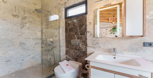 Yatak Odası 1 : 1 Adet çift kişilik yatak, elbise dolabı, komidin, jakuzi, saç kurutma makinası, klima ve tuvalet banyo bulunmaktadır.