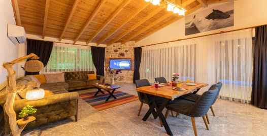 Salon : Villamızda tüm ihtiyaçlarınızı karşılayacak mutfak araç gereçleri bulunmaktadır. Salonumuzda; TV, oturma grubu, sehpa vb. eşyalar bulunmaktadır.