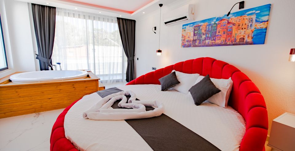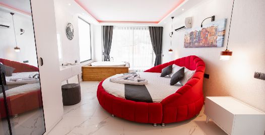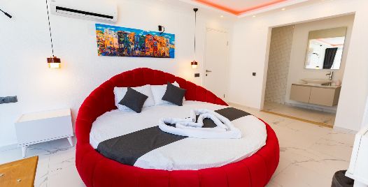 1. Yatak Odası : çift kişilik yatak, klima, jakuzi, elbise dolabı, makyaj masası, banyo ve tuvalet bulunmaktadır.