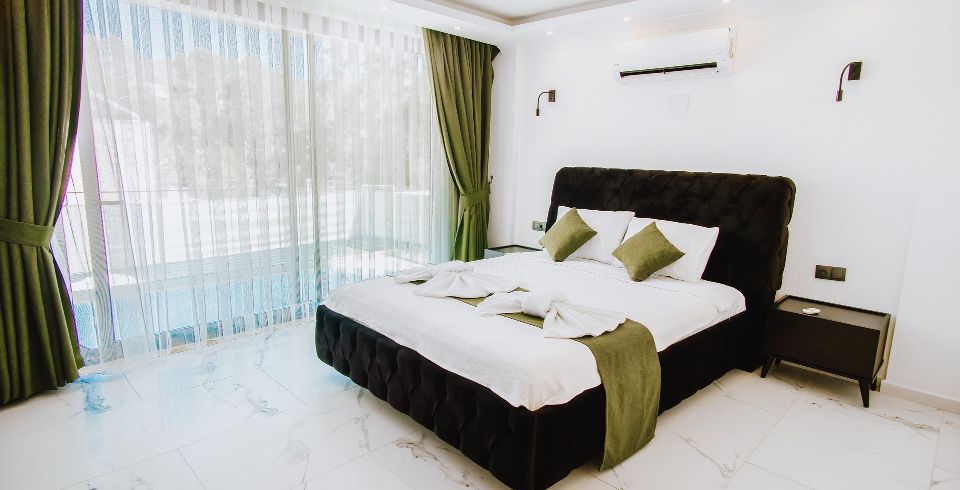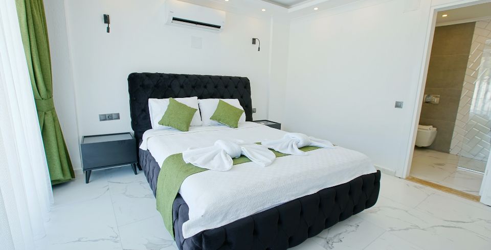 2. Yatak Odası : çift kişilik yatak, klima, elbise dolabı, makyaj masası, banyo ve lavabo bulunmaktadır.