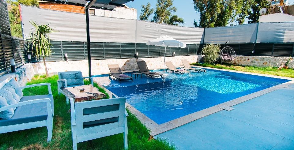 Havuz ve Bahçe : Yüzerken aynı zamanda da manzaranın keyfini çıkaracağınız muhafazakar villamızın havuz ve bahçe bölgesinde özel yüzme havuzu, havuz başında şezlong, güneşlenme şemsiyesi, barbekü, yemek masası, sandalyeleri bulunmaktadır. Yemek masasının üzeri kapalı olup güneşten korunmanızı sağlayacaktır.