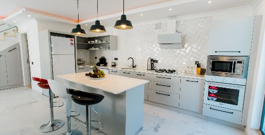 Mutfak : modern Amerikan mutfağımızda aradığınız her şeyi bulmanız mümkün. Buzdolabı, bulaşık makinesi, çamaşır makinesi, 4’lü ocak, elektrikli su ısıtıcısı, ekmek kızartma makinesi, 4 kişilik yemek takımı bulunmaktadır.