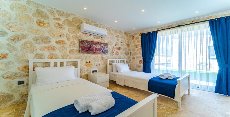 3. Yatak Odası : 2 adet tek kişilik yatak, komodin, klima, banyo ve lavabo bulunmaktadır.