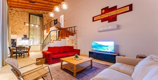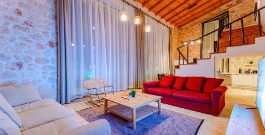 Salon : Villamızın iç dizaynı da son modaya uygun olarak modern bir şekilde tasarlanmıştır. Çeşitli dekoratif eşyalarla süslediğimiz salonumuz havuzlu bahçeye açılıyor. Villa salonunda oturma grubu, TV, internet, klima, sehpa bulunmaktadır.