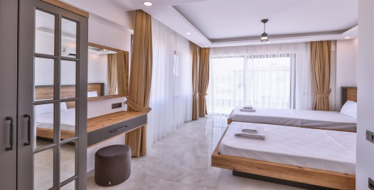 2. Yatak Odası : Geniş bir balkona açılan odamızda 2 adet tek kişilik yatak, komodin, klima bulunmaktadır.