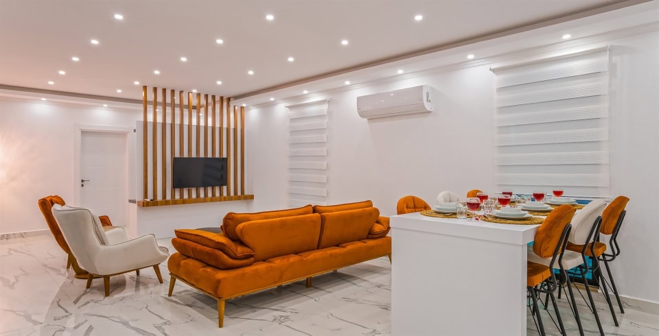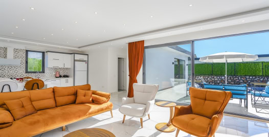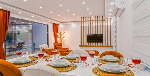 Salon : Villamızın salonunda oturma grubu, TV, internet, klima, yemek masası, sehpa bulunmaktadır.