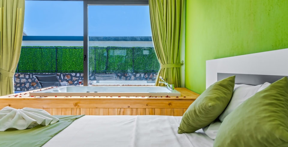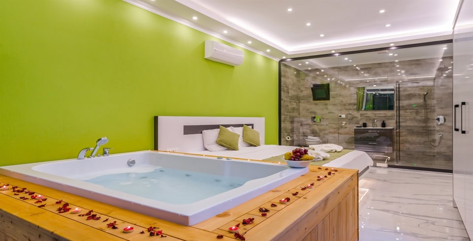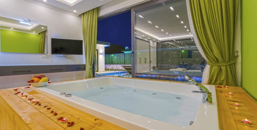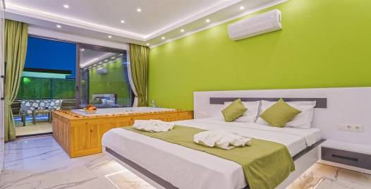 1. Yatak Odası : Çift kişilik yatak, klima, komodin, makyaj masası, jakuzi, banyo ve lavabo bulunmaktadır.