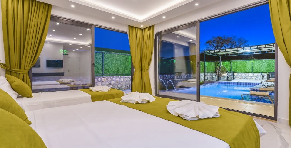 Sessiz, sakin doğa içerisinde bulunan villamız Kalkan Bezirgan bölgesindedir. 2 yatak odalı 5 kişi konaklama kapasitesine sahip yazlık kiralık villa balayı villası olarak tercih edilmektedir. Modern bir tasarıma sahip Villa Ortaç 1, villa içerisinde çift kişilik süit yatak odasında jakuzi de bulunmaktadır. Havuz terası korunaklı olan villamız muhafazakar ailelerimiz için de uygun olup geniş havuz ve havuz terasına da sahiptir.