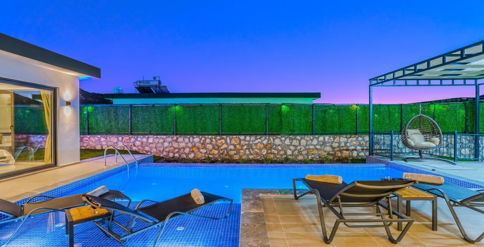 Havuz ve Bahçe : Villamızın özel yüzme havuzun muhafazakar olup dışardan görünmemektedir. şezlong, şemsiye, yemek masası, barbekü bulunmaktadır.
