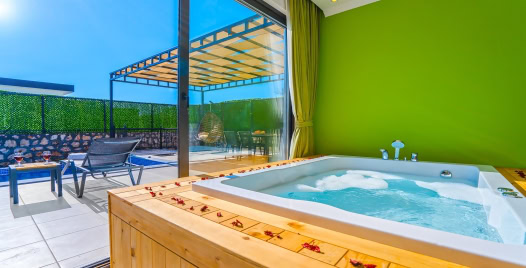 Havuz etrafı korunaklı villalarımızda %100 görünmememe garantisi vermemekteyiz bu villalarımızda her zaman %5 sakınma payı mevcuttur.