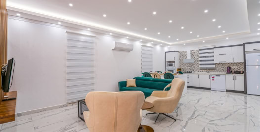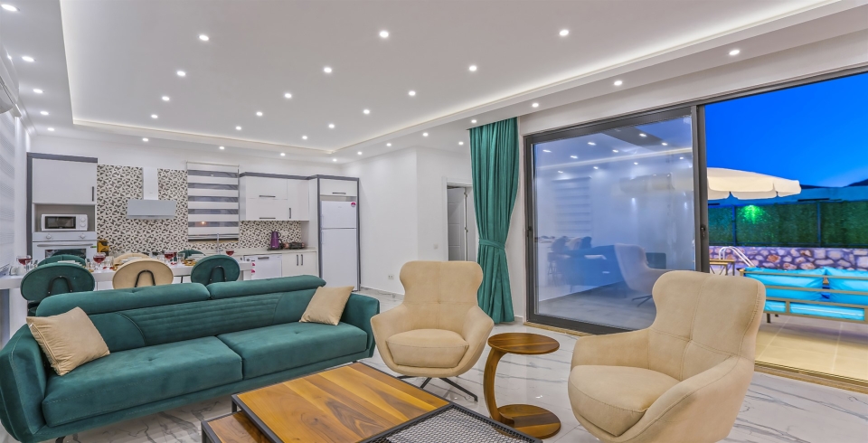Salon : Villamızın salonunda oturma grubu, TV, internet, klima, yemek masası, sehpa bulunmaktadır.