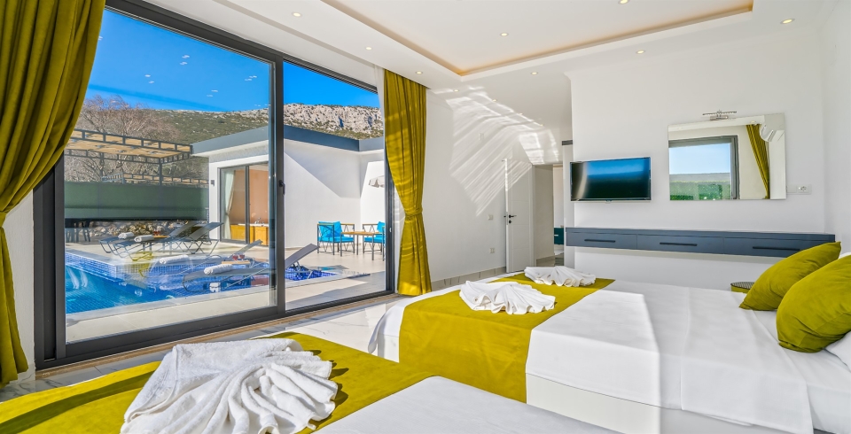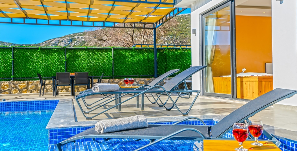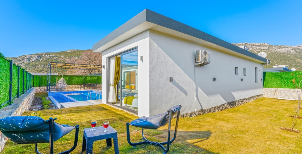 Villa Ortaç 3, Kalkan Bezirgan köyünde bulunan 2 yatak odalı 5 kişilik kapasiteye sahip muhafazakar ailelere uygun ekonomik villadır. Villamızın suit yatak odasında keyifli vakitler geçirmeniz için çift kişilik jakuzi bulunmaktadır. Villamızın 2. yatak odasındaki 1 adet çift kişilik 1 adet tek kişilik yatak sayesinde villamızda 5 kişi konaklama yapabilmektedir. Villamız siz değerli misafirlerimizin konforuna önem vererek tasarlanmıştır içerisinde kaliteli ve konforlu mobilyalar kullanılmıştır.