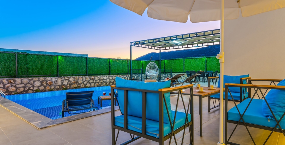 Havuz ve Bahçe : Villamızın özel yüzme havuzun muhafazakar olup dışardan görünmemektedir. şezlong, şemsiye, yemek masası, barbekü bulunmaktadır.