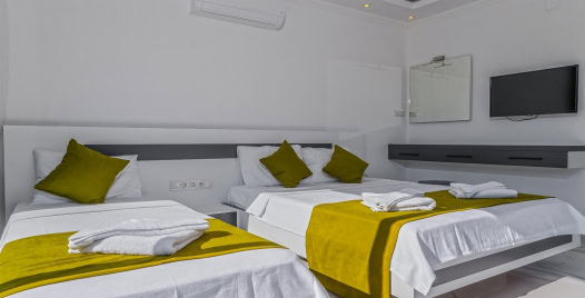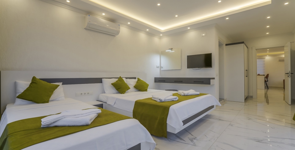 2. Yatak Odası : 1adet tek kişilik yatak ,1 adet çift kişilik yatak, komodin, klima, makyaj masası, elbise dolabı, banyo ve lavabo bulunmaktadır.