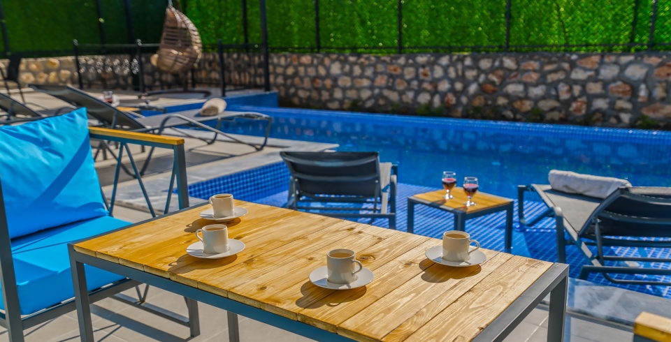 Havuz ve Bahçe : Villamızın özel yüzme havuzun muhafazakar olup dışardan görünmemektedir. şezlong, şemsiye, yemek masası, barbekü bulunmaktadır.