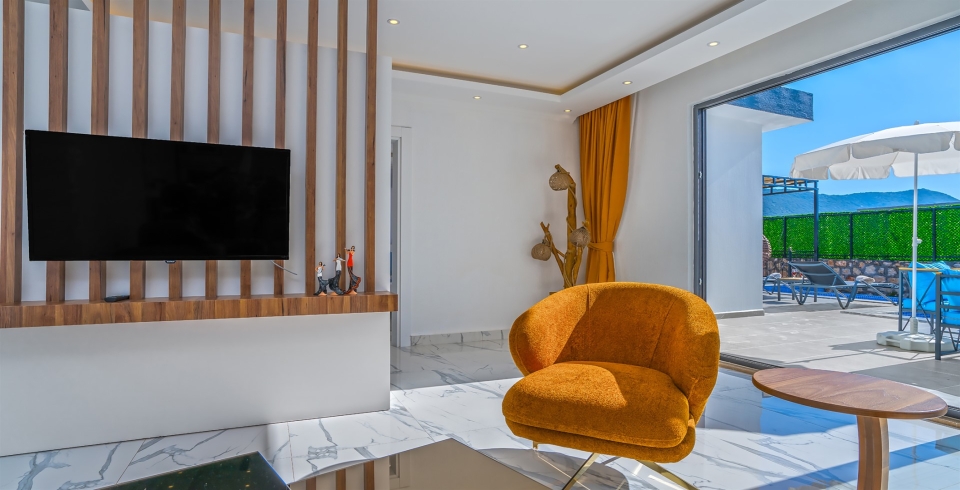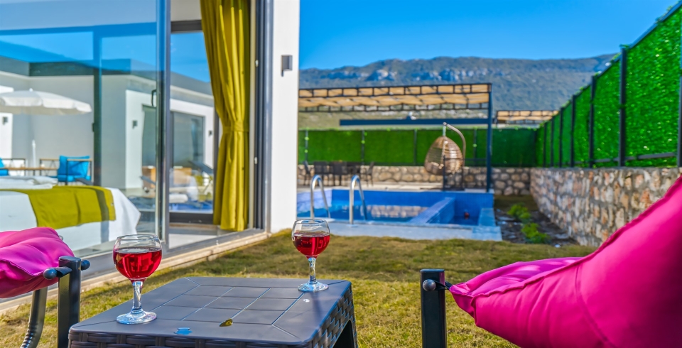Sessiz, sakin doğa içerisinde bulunan villamız Kalkan Bezirgan bölgesindedir. 2 yatak odalı 5 kişi konaklama kapasitesine sahip yazlık kiralık villa balayı villası olarak tercih edilmektedir. Modern bir tasarıma sahip Villa Ortaç 4, villa içerisinde çift kişilik süit yatak odasında jakuzi de bulunmaktadır. Havuz terası korunaklı olan villamız muhafazakar ailelerimiz için de uygun olup geniş havuz ve havuz terasına da sahiptir.