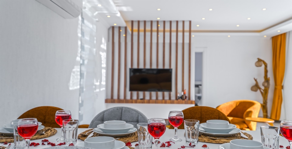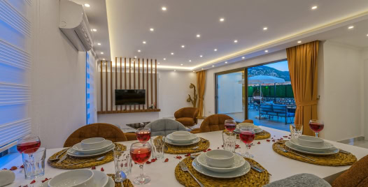 Salon : Villamızın salonunda oturma grubu, TV, internet, klima, yemek masası, sehpa bulunmaktadır.