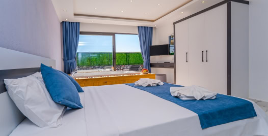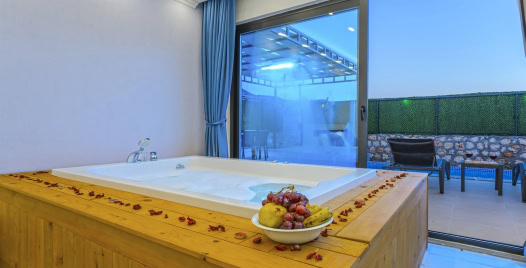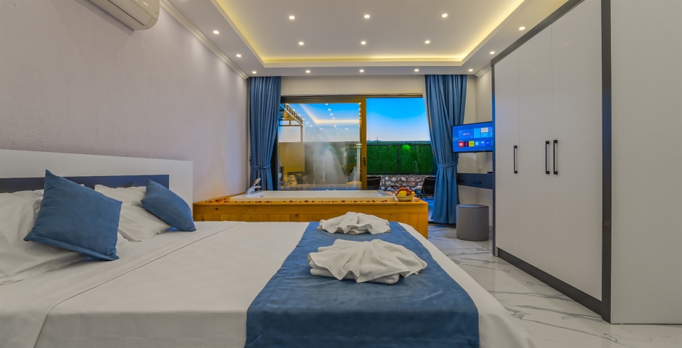 1. Yatak Odası : Çift kişilik yatak, klima, komodin, makyaj masası, jakuzi, banyo ve lavabo bulunmaktadır.