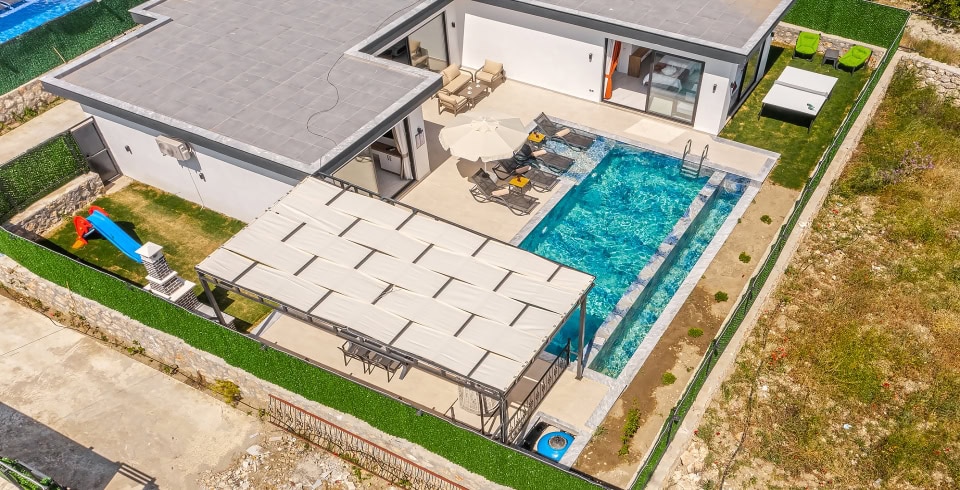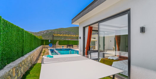 Villa Ortaç 5, Kalkan’ın doğal güzellikleriyle öne çıkan Bezirgan bölgesinde yer alan, 2 yatak odalı ve 4 kişilik konaklama kapasitesine sahip lüks bir kiralık villadır.