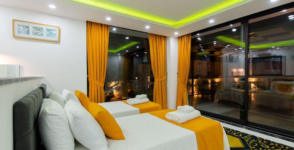 2. Yatak Odası : 2 adet tek kişilik yatak, elbise dolabı, makyaj masası, komodin ve banyo ve lavabo bulunmaktadır.