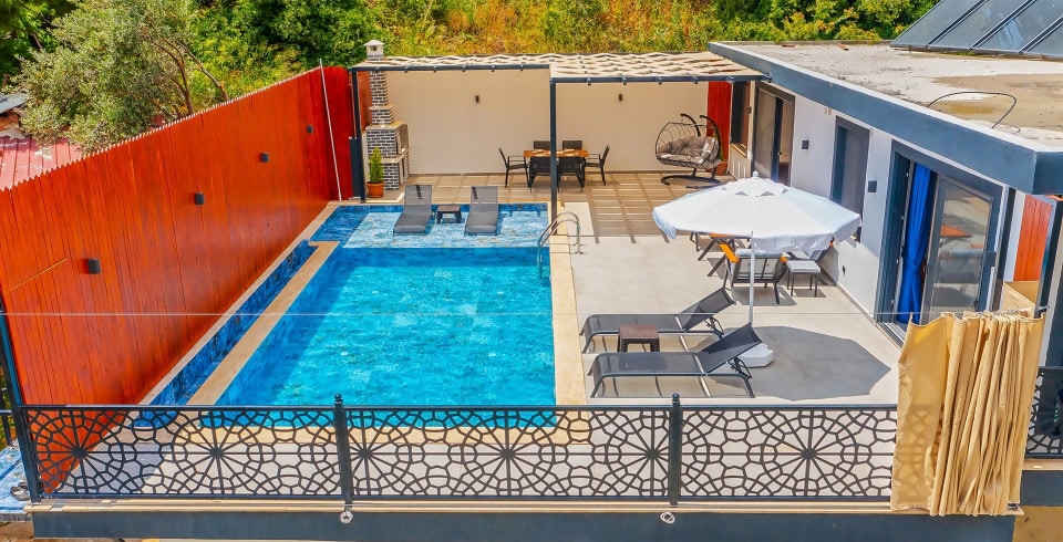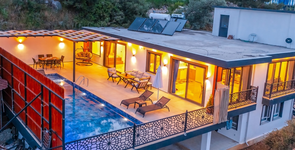 Villa Özüm, Kalkan İslamlar mevkiinde konumlanmış, muhteşem doğa manzaralı tatil villasıdır, 2 yatak odası ve korunaklı özel havuzu ile 4 kişilik ailelere ve balayı çiftlerine konaklama imkanı sağlamaktadır. Lüks ve konforlu dekore edilmiş villa muhafazakar aileler için idealdir. Villamızın ebeveyn yatak odasında bulunan jakuzisi ile yılın bütün stres ve yorgunluğundan arınabilirsiniz. Sizler için her şeyin düşünüldüğü villamızda sizlere sadece tatilin tadını çıkarmak kalıyor.
