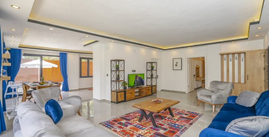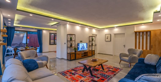 Salon : Oturma grubu, TV, sehpa, Klima bulunmaktadır.
