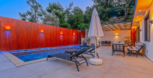 Havuz ve Bahçe : Özel yüzme havuzu, şezlong, şemsiye, oturma grubu, yemek masası, salıncak, barbekü bulunmaktadır.
