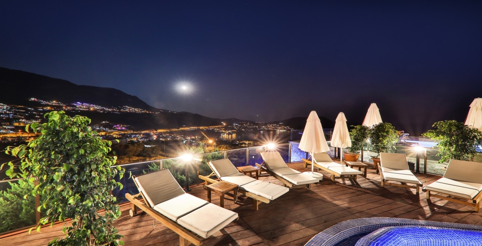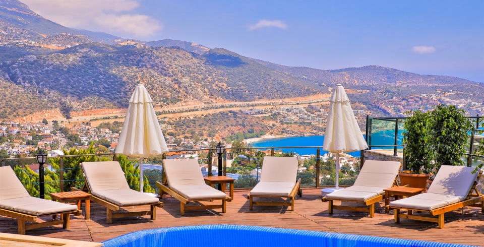 Kaş Kalkan bölgesinde bulunan yazlık kiralık villamız 5 yatak odalı 9 kişilik konaklama kapasitesine sahiptir. Kalabalık aile ve arkadaş grupları tarafında tercih edilen villamız özenle dizayn edilmiştir. Kalkan merkeze sadece 1 km uzaklıkta bulunan Villa Panorama 2 muhteşem deniz manzarasını da sizlere sunmaktadır. Ayrıca oldukça geniş havuz ve havuz terası da olup çocuk havuzu da bulunmaktadır. Bahçe içerisinde çim alanı olup keyifli zamanlar da geçirebileceğiniz oyun alanı ve hamak da bulunmaktadır.