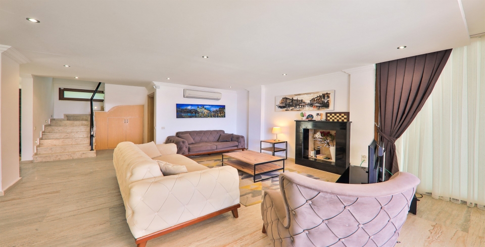 Salon : Villamızı salonunda oturma grubu, klima, yemek masası, uydu alıcı, TV, internet bulunmaktadır.